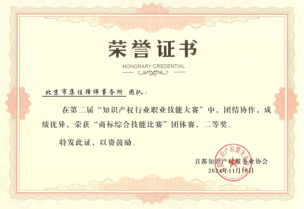 近日,在北京市知识产权局、海淀区市场监督管理局(区知识产权局)的指导下,由首都知识产权服务业协会主办,中国知识产权研究会专利专业委员会、北京(中关村)国际知识产权服务大厅承办的第二届“知识产权行业职业技能大赛”圆满落幕,集佳多位代理人与商标参赛团队在本届大赛中斩获多项佳绩。在“行业英语演讲比赛”个人赛中,何冉冉力战群雄,拔得头筹荣获一等奖,王茸茸、王瑜荣获三等奖;在商标综合技能比赛中,集佳参赛的两支队伍均取得优异成绩,由黎琳、赵敏敏、张雅静三位组成的队伍获得二等奖,由李晴、伍君、曾珍三位组成的队伍获得三等奖。